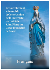 Il y a trois ans, à un moment de profonde incertitude, la Fraternité Sacerdotale Saint-Pierre a invoqué le Cœur Immaculé de Marie, consciente qu’on n’a jamais vu quelqu’un se réfugier sous sa protection sans être aidé. Après une neuvaine, la Fraternité s’est alors consacrée à son Cœur Immaculé, le jour même où, providentiellement, le Saint-Père publiait le décret réaffirmant son droit propre et le charisme qui est le sien depuis sa fondation.